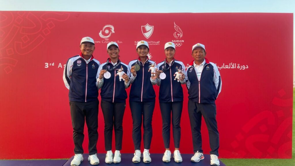 พิมพ์พิศา รับรอง, ปริม ปราชญ์นคร และกัลยรักษ์ พงศ์พิธานนท์ พาทีมไทยจบ 28 อันเดอร์พาร์ 404 คว้าเหรียญเงินประวัติศาสตร์ ขณะที่จีนกวาด 4 เหรียญทอง ในการแข่งขันกอล์ฟในกีฬาเอเชียน ยูธเกมส์ 2025 ที่กรุงมานามา ประเทศบาห์เรน เมื่อวันที่ 25 ตุลาคมที่ผ่านมา