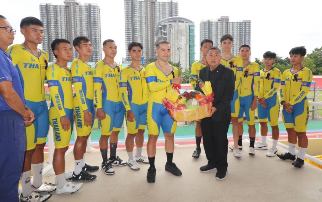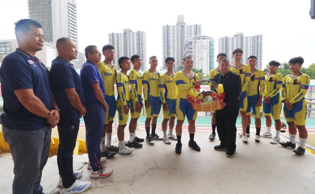 พลเอกเดชา เหมกระศรี นายกสมาคมกีฬาจักรยานแห่งประเทศไทยฯ เดินทางไปเยี่ยมเพื่อให้กำลังใจนักกีฬาจักรยานประเภทลู่ทีมชาติไทยชุดเตรียมสู้ศึกซีเกมส์ ครั้งที่ 33 ณ สนามเวลโลโดรม หัวหมาก