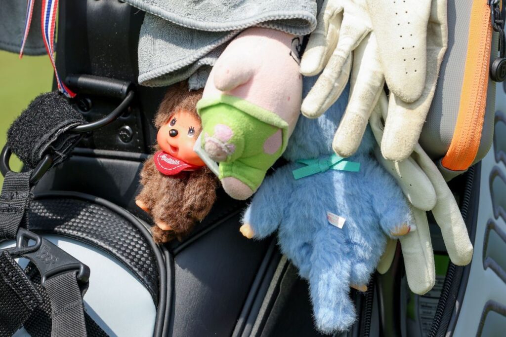 แต่เมื่อก้าวเข้าสู่สนามกอล์ฟ เธอกลับโฟกัสเต็มที่กับทุกช็อต และพกตุ๊กตานำโชคอย่างแพทริก สตาร์ จากการ์ตูน SpongeBob SquarePants และ Monchhichi อีกหลายตัวห้อยติดถุงกอล์ฟไว้เสมอ เพื่อเตือนตัวเองให้ ‘เล่นให้สนุก ในทุกครั้งที่ลงแข่ง’