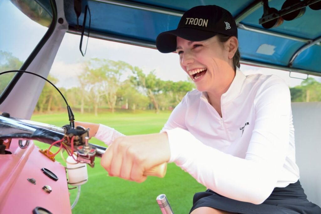 ปาจรีย์พาเพื่อนในแอลพีจีเอสัมผัสบรรยากาศนั่งตุ๊กตุ๊กในสนามกอล์ฟ